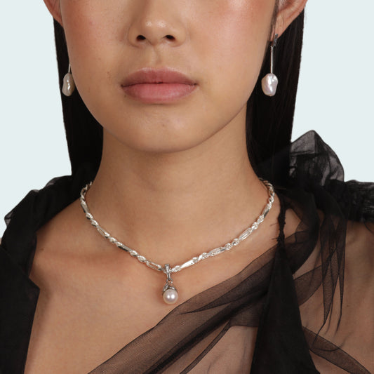 Held by a strand of perfectly 'imperfect ' Keshi pearls, the blooming petals of the pendant embrace the perfectly round pearl — illustrating the embrace of love + protection our Mother Figures bestow upon us, our mothers holding us in a world of chaos.