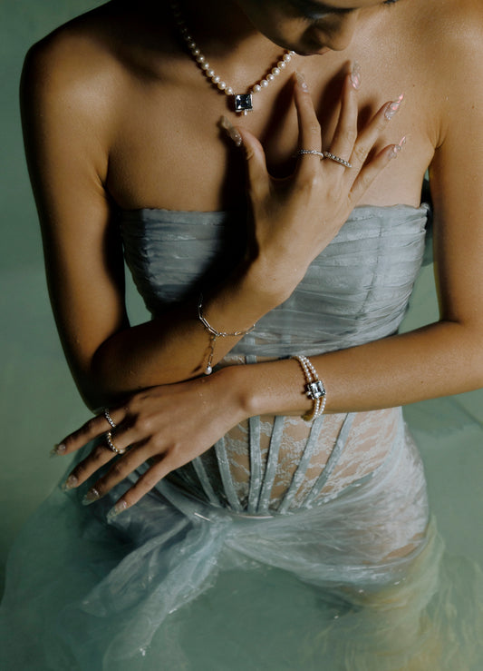 Designed for moments before + beyond the big day. Bridal jewelry intended to celebrate the modern women — intricate designs to reflect the strength and vulnerability in romance. The designs of each piece are her metaphors for love — the gentle dance of water flow, the turbulence of waves, and the power of creation. With a warm embrace — Costanté welcomed AVTN Studio's co-founder and intergalactic friend, Zoe Zhou, as the Bridal Collection's Art Director.