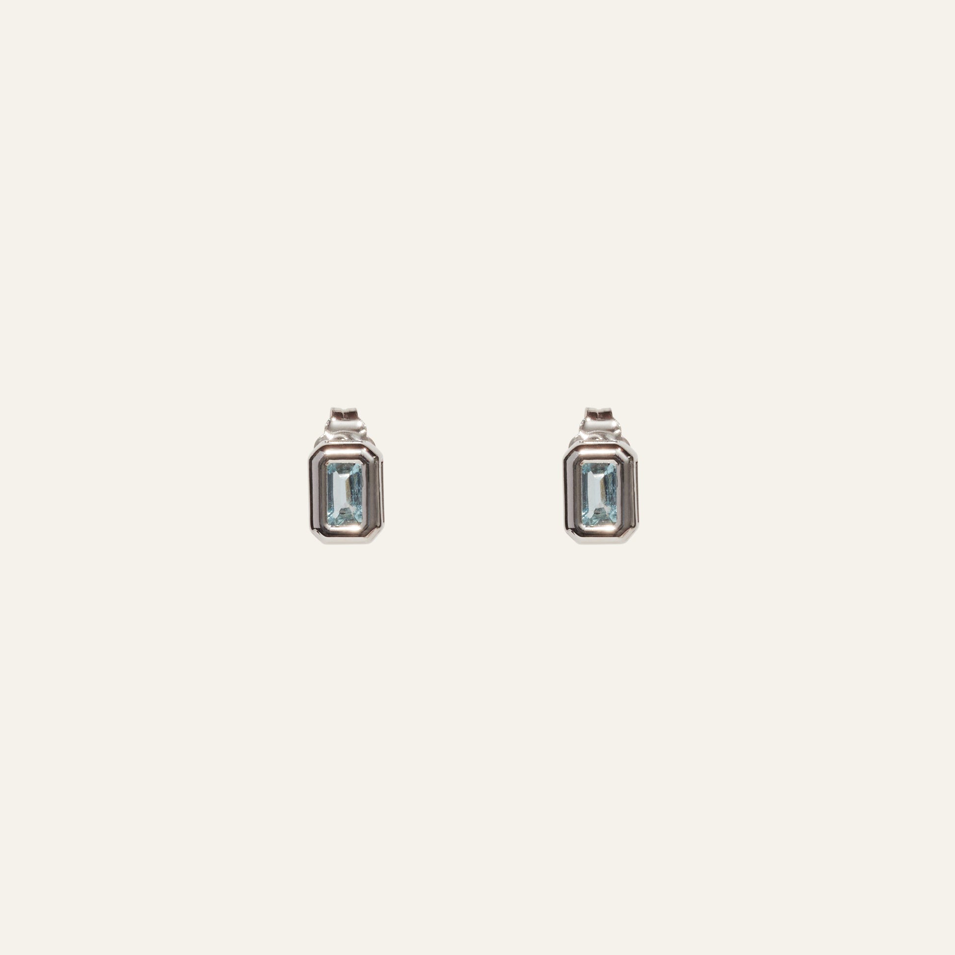 Made with emerald-cut aquamarines, bezel set in 14K White Gold.