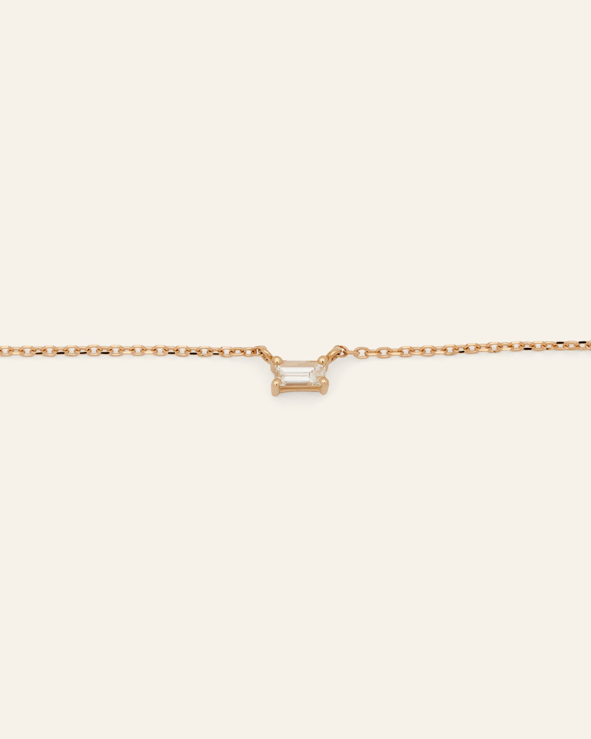 An essential to your necklace stack with a natural VS2+ baguette diamond. Handcrafted in 14K solid gold. Details: