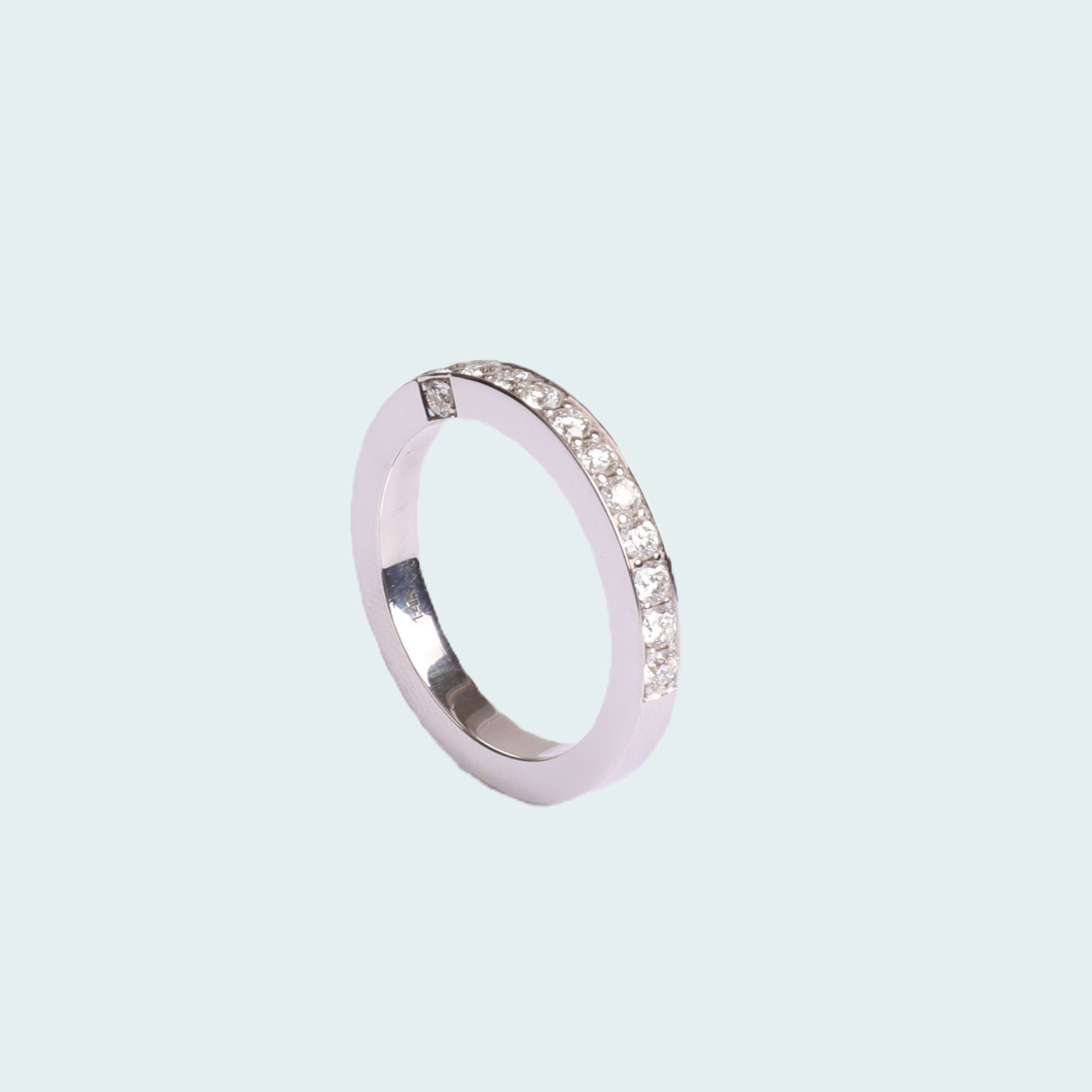 Pave set natural diamonds with a detailed edge of diamonds at the center. Approximately 0.70 carats total.