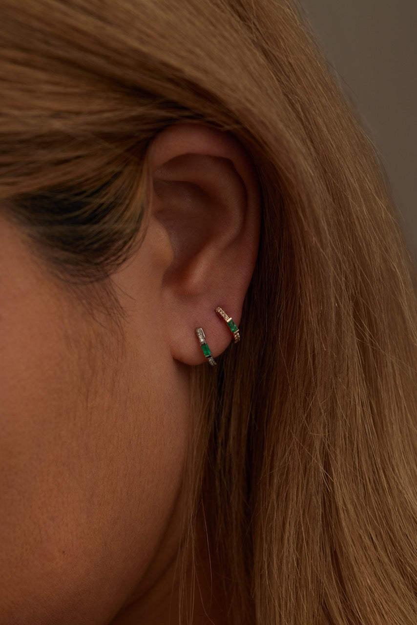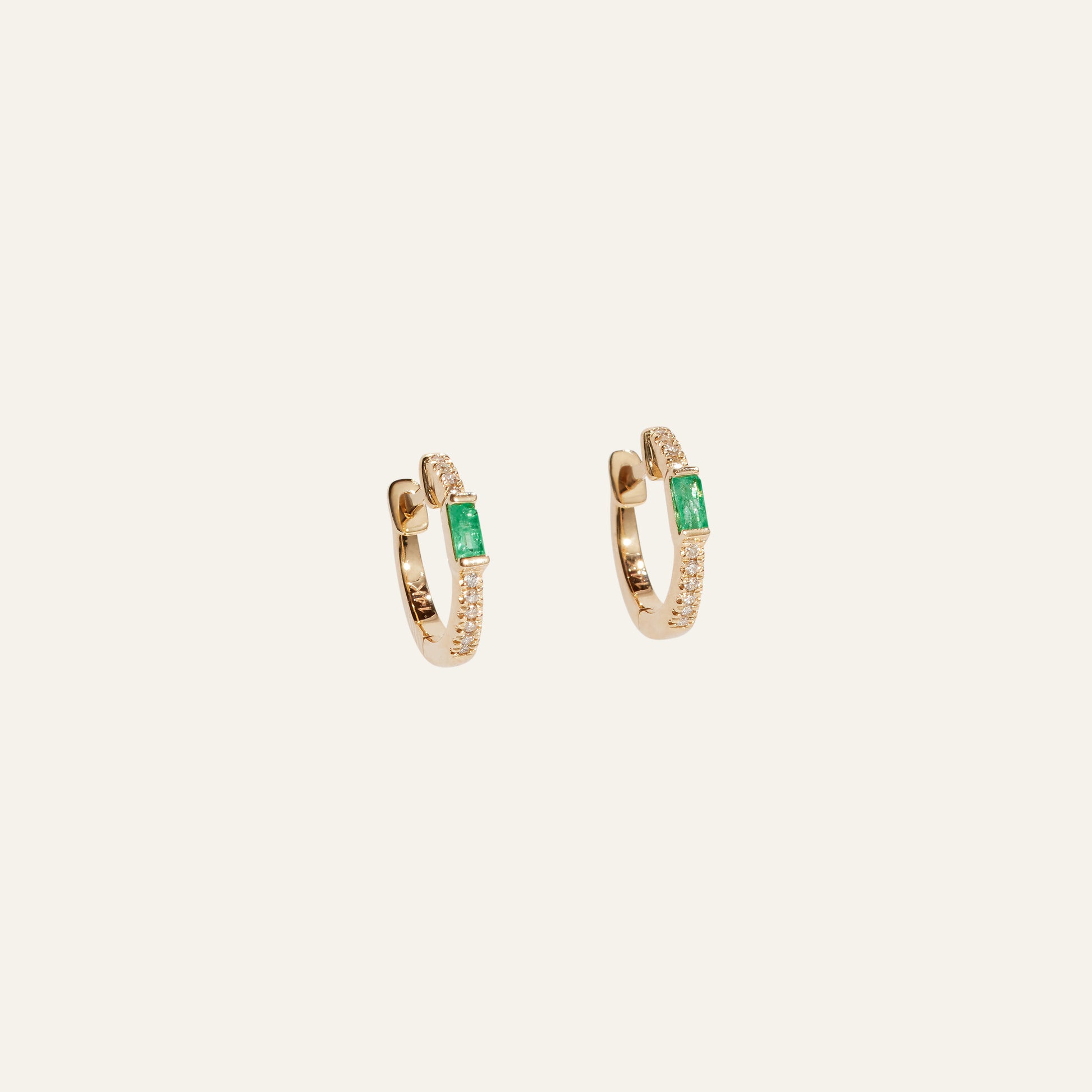 Made in 14K Gold, Natural Emerald + Diamonds.