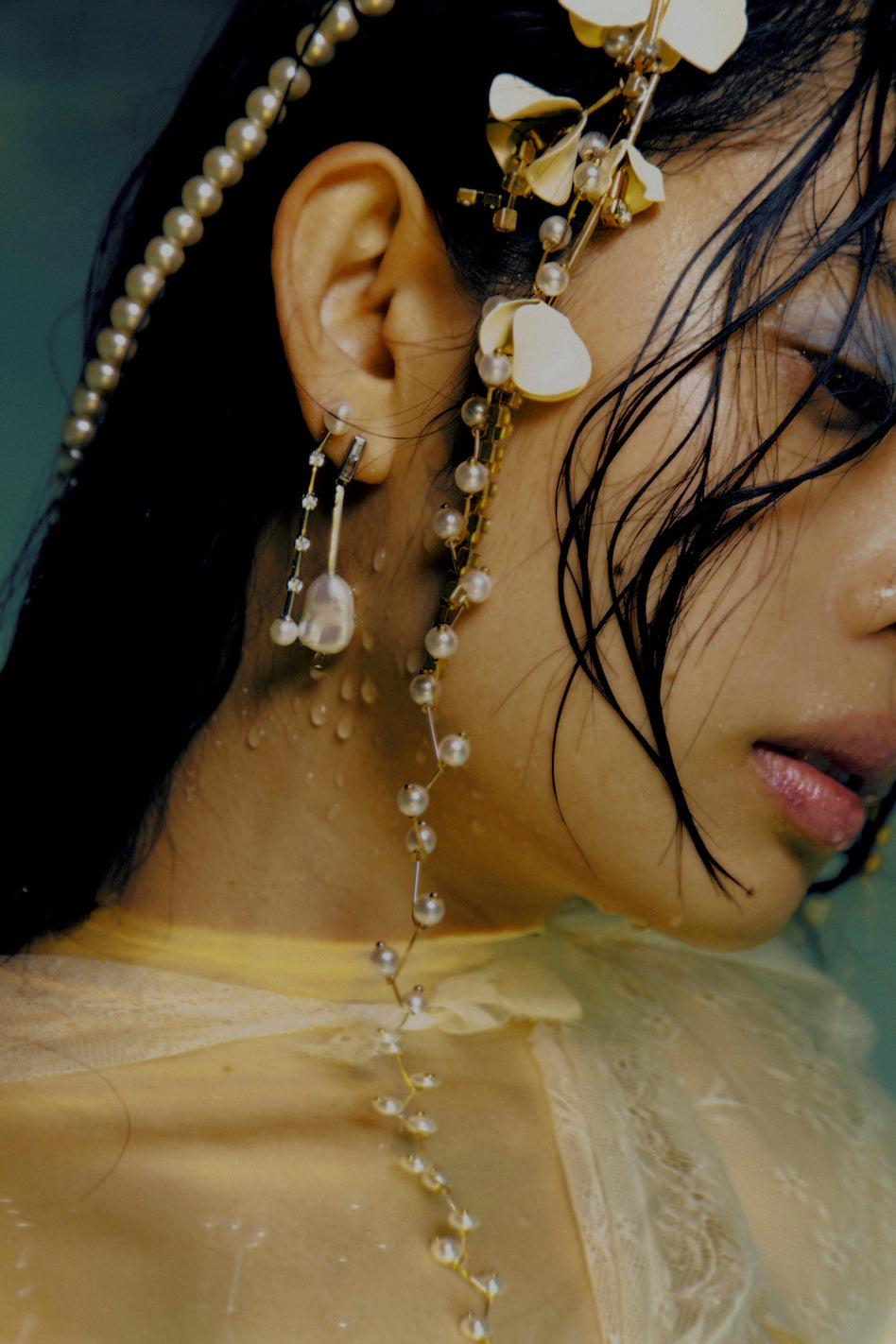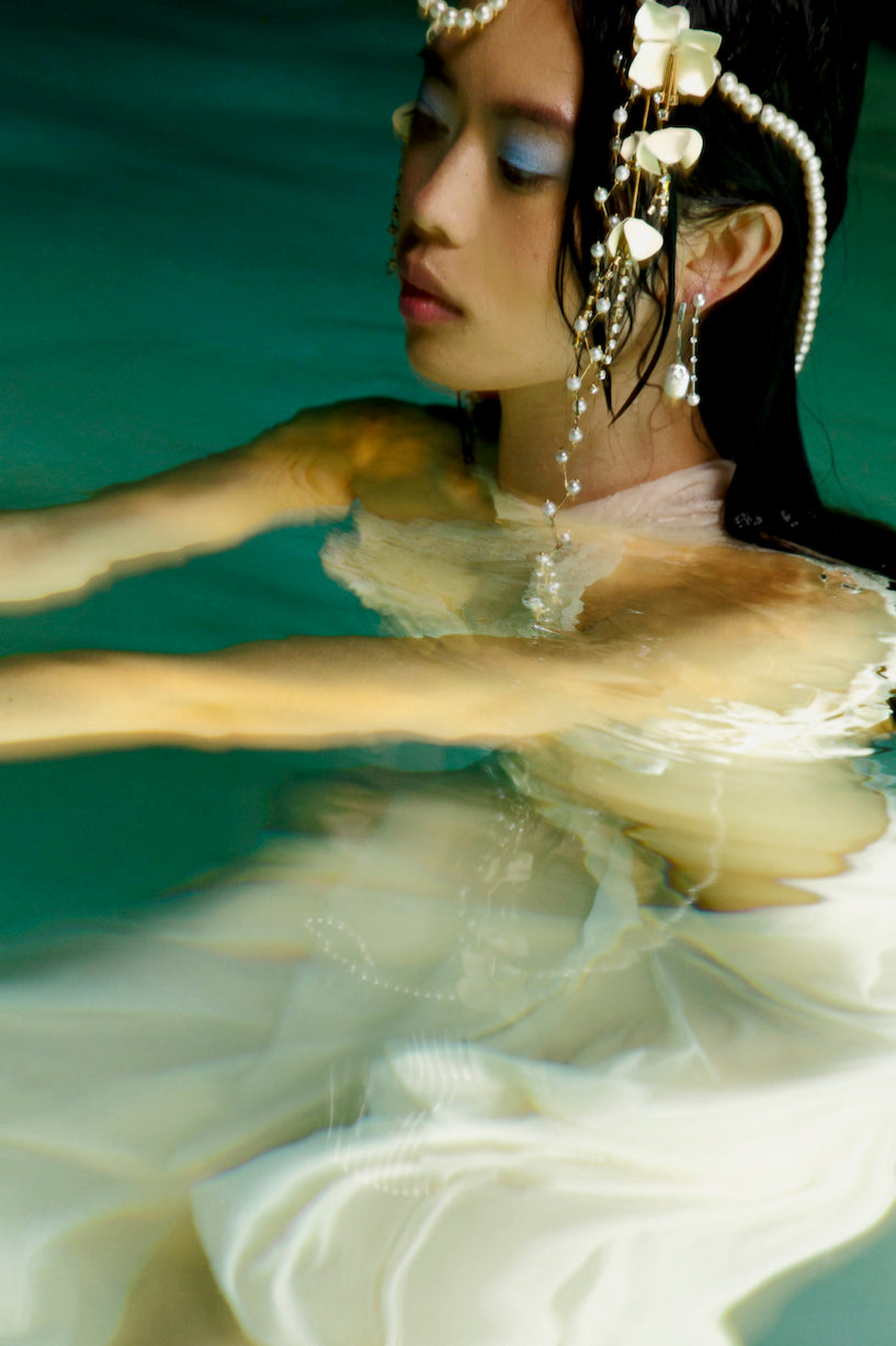 Designed with subtle opulence in mind – a light flex. Handmade with Freshwater Pearls and a delicate cascade of floating natural diamonds.