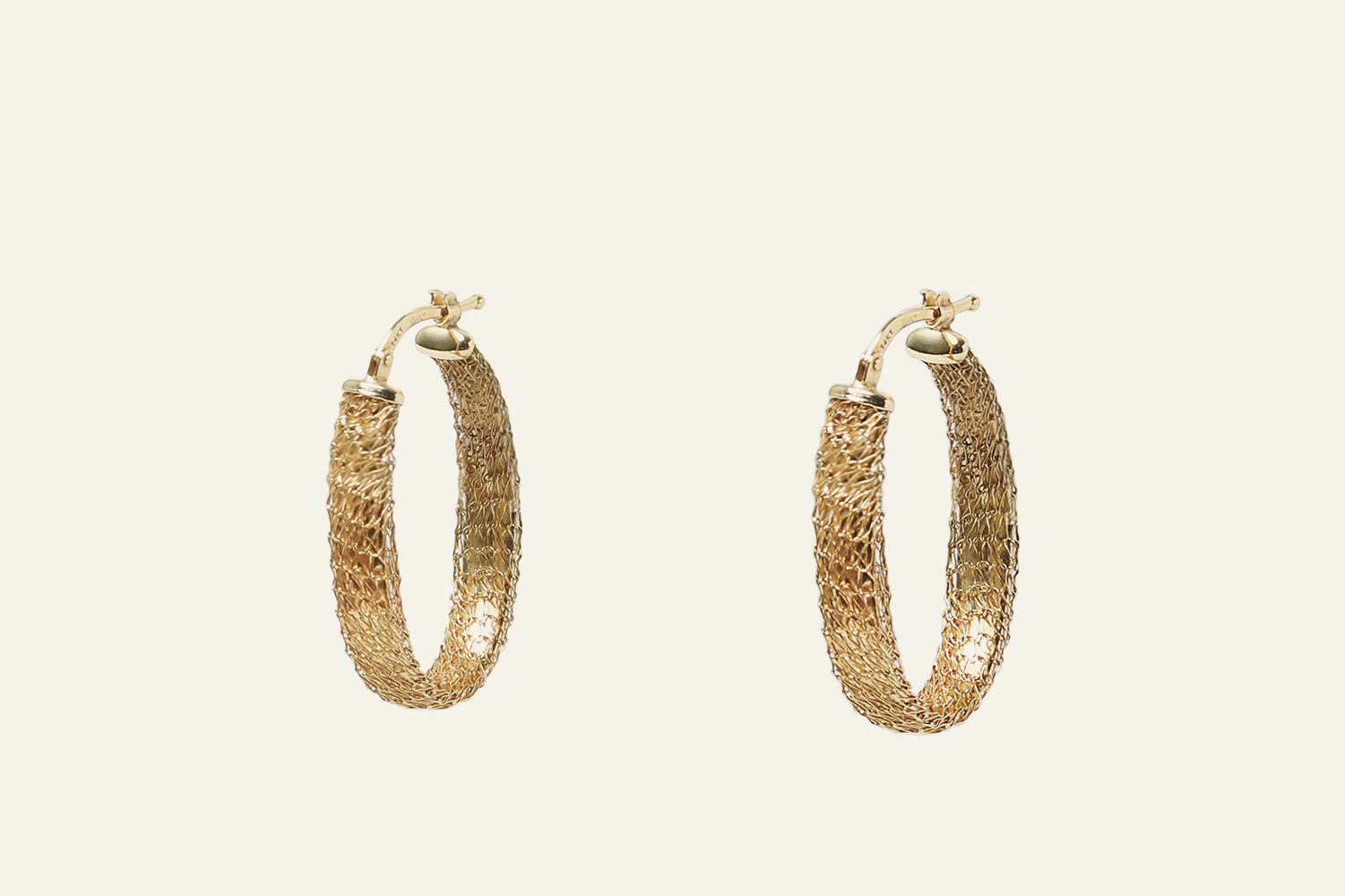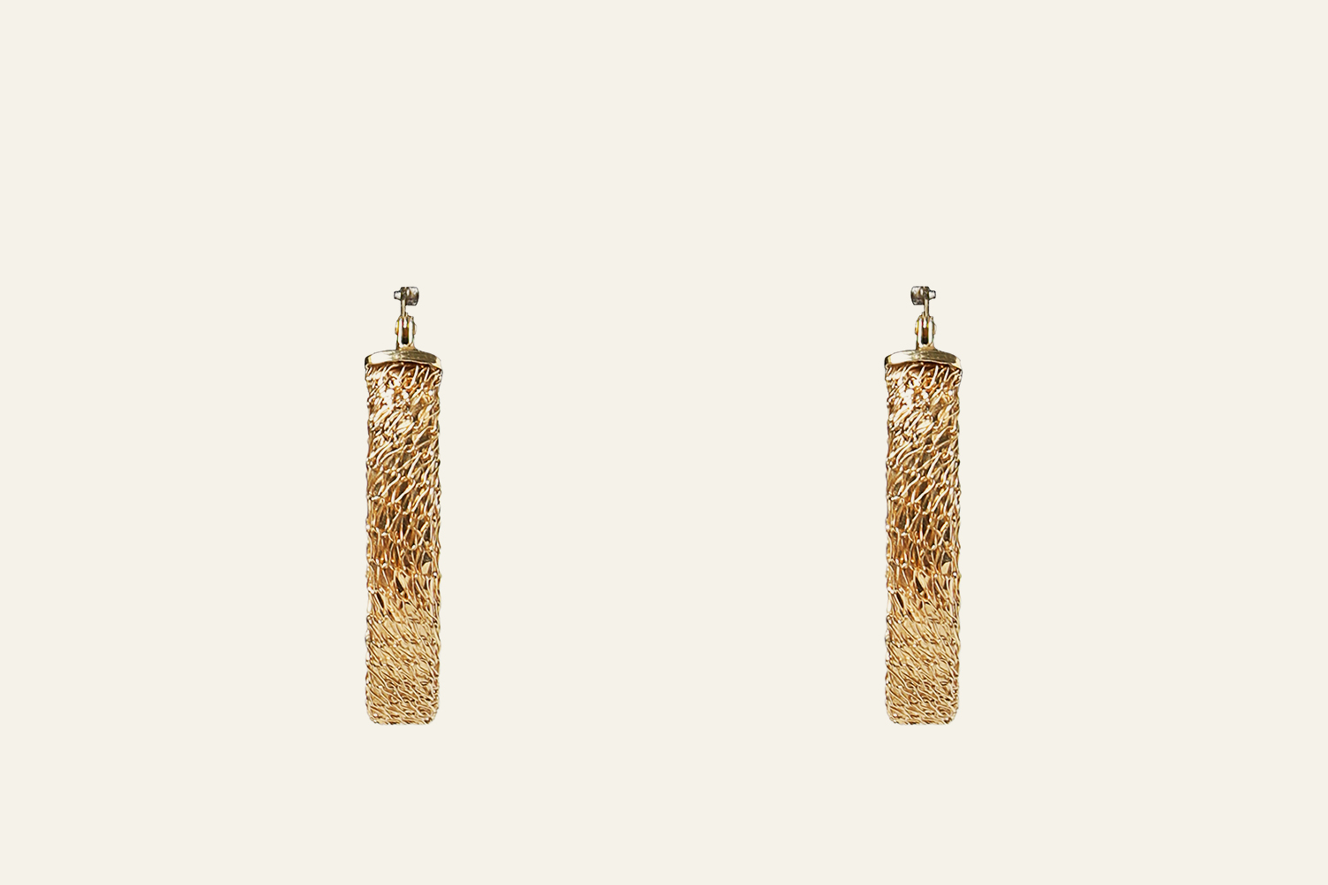 A Costanté classic. The L'Opa Hoop Earrings are designed to emulate the feeling of nostalgia. Made with gold mesh, the intricately laced details carry a semblance of the past while the minimalist shapes leads us back to the contemporary.