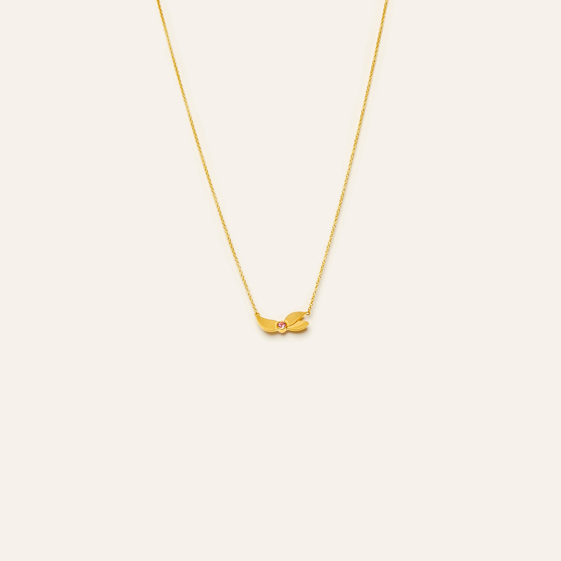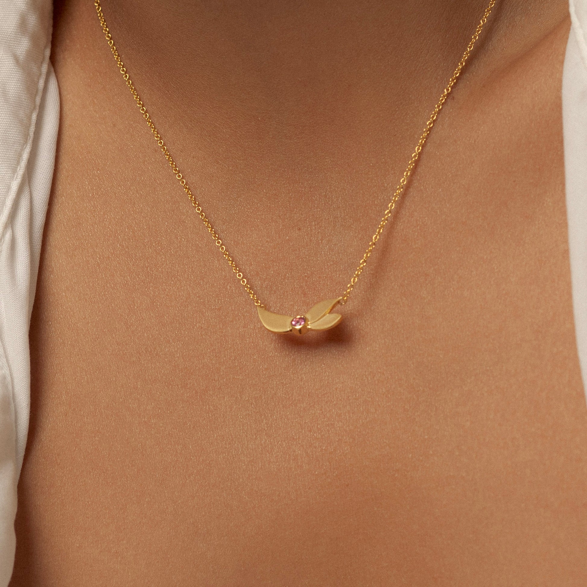 Handmade with 14K gold and a warm pink sapphire center. The Lotus Necklace is made to order. Please allow 5-10 business days for production before shipping.