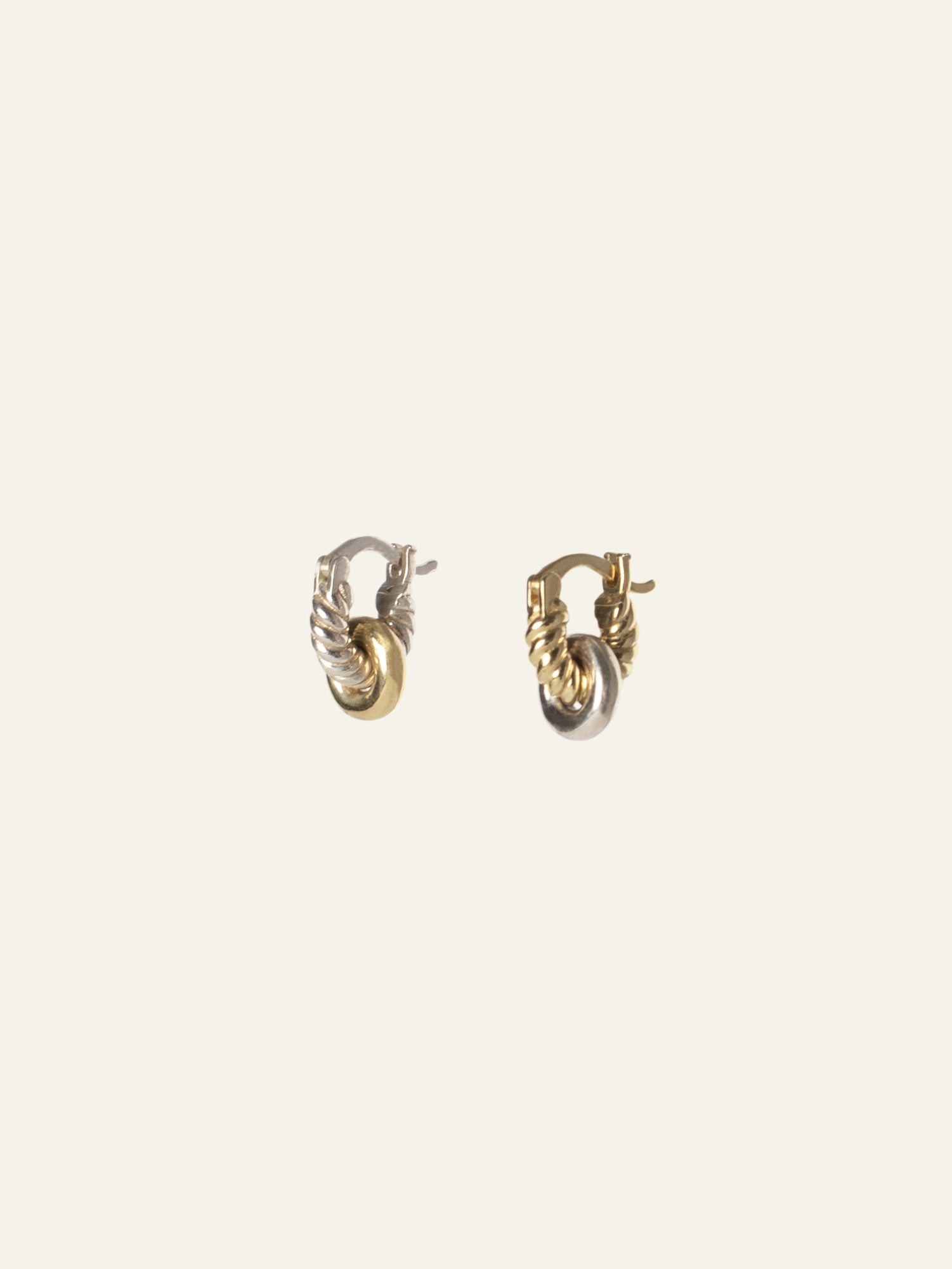 Contrasting alloy hoops handmade with sterling silver and 14K yellow gold. Also available in 14K white gold + yellow gold.