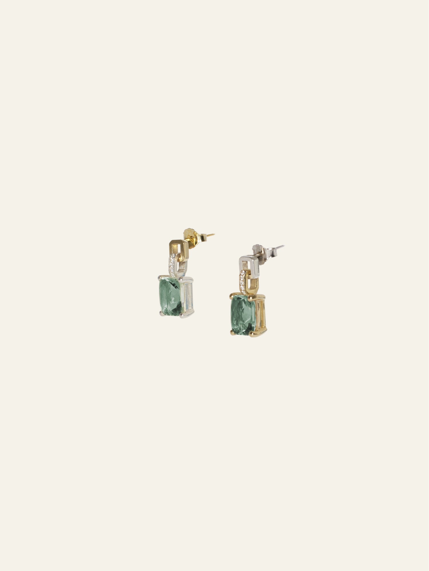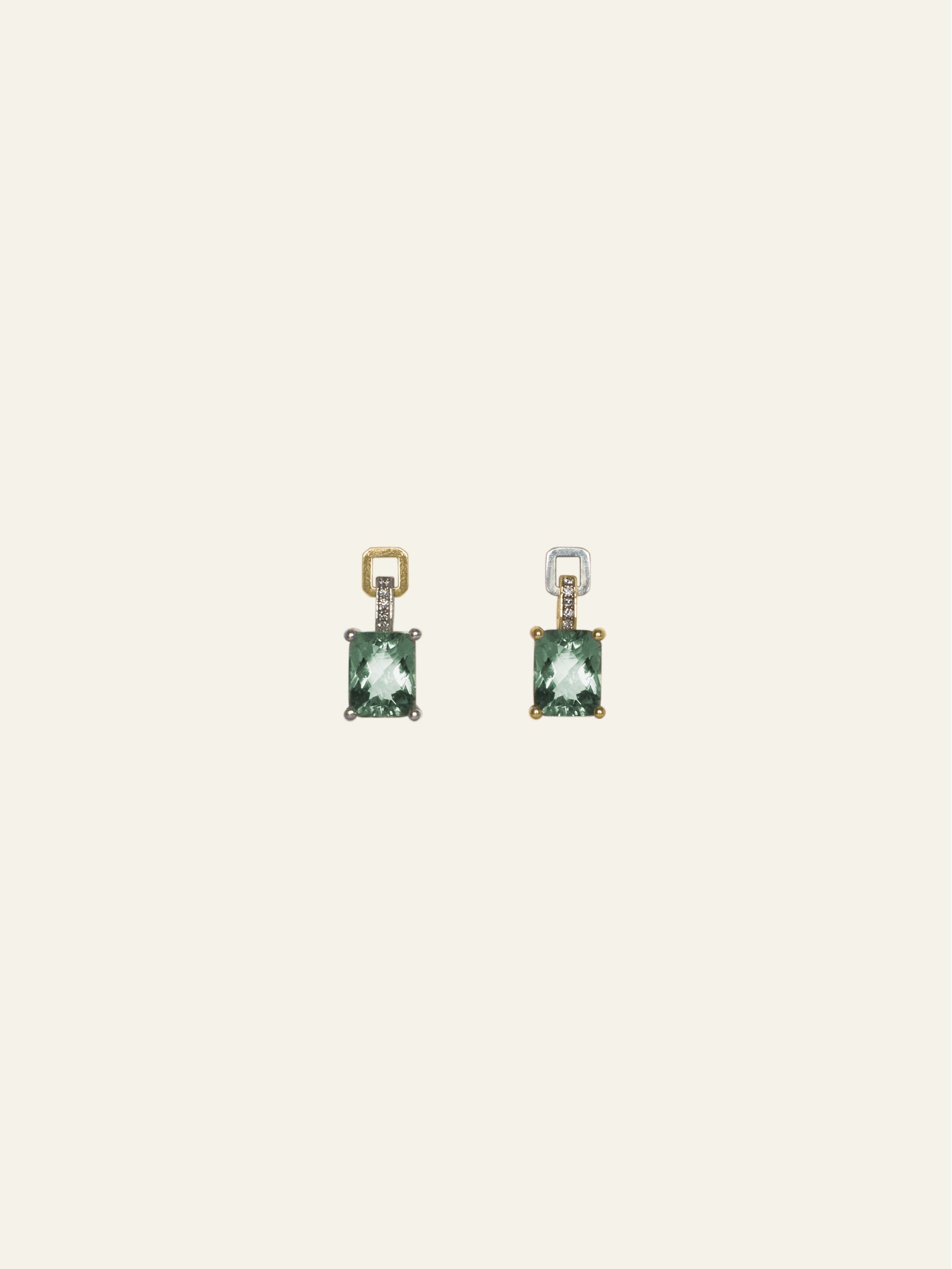 Designed with 14K Gold, green amethysts, and natural diamonds. The Monarch Earring is handmade to order. Please allow 2-3 weeks production time prior to delivery.