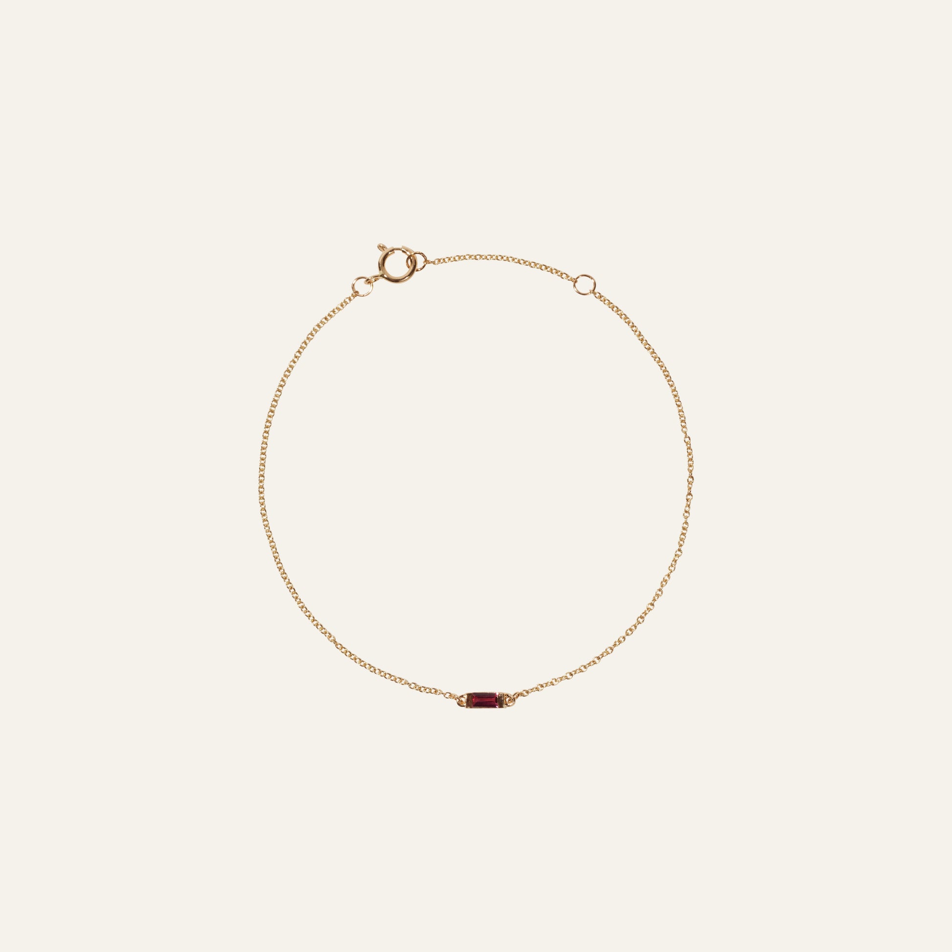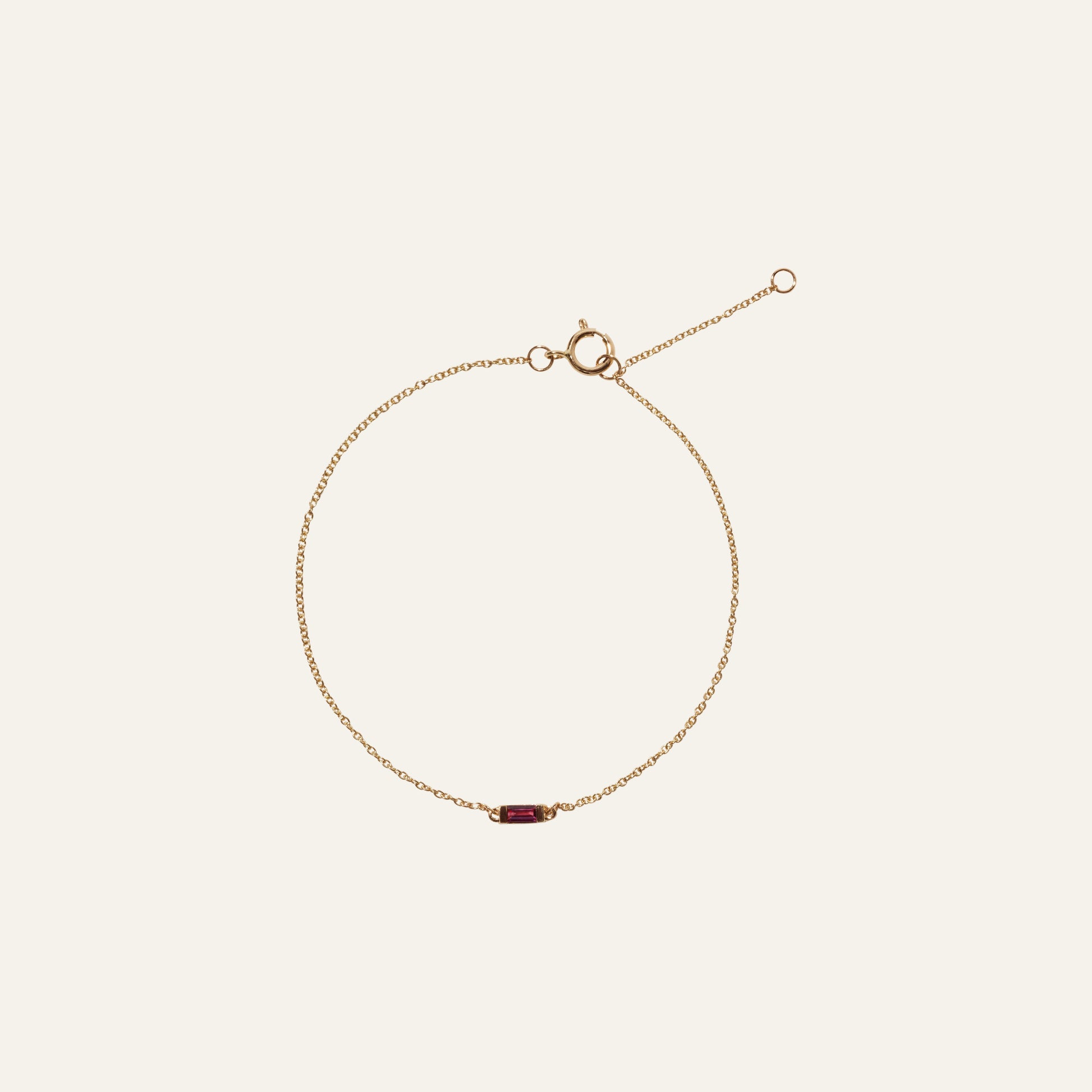 The perfect gift for you or someone you reaaaally like. An elegant touch and adjustable from 6.5" to 7.5" so you don't need to guess their wrist size. Made in 14K solid gold featuring a natural ruby.